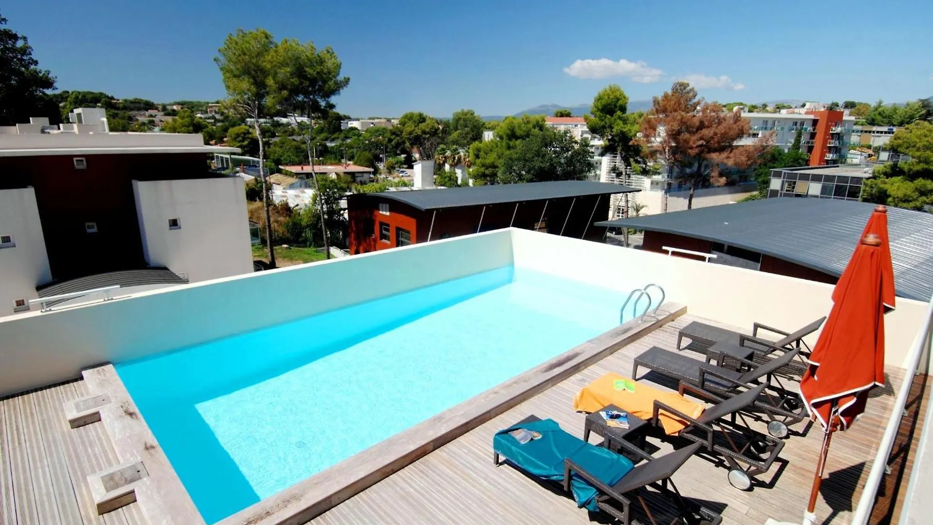 Appart Hotel Odalys City Antibes Olympe fournit une piscine sur le toit pour la relaxation des invités.